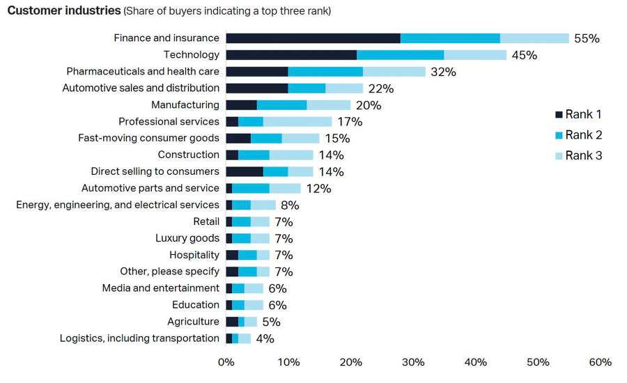 The Incentive Travel Index chart of top industries using incentive travel features the biggest moneymakers in terms of profits — finance and insurance, technology, pharmaceuticals and automotive sales.